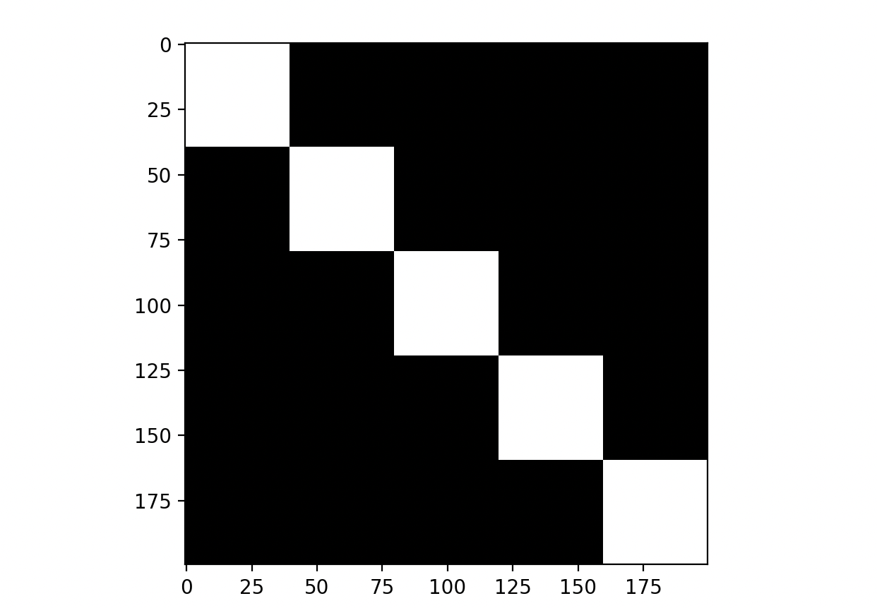2. 200x200의 행렬을 만든 후 크기 40x40의 사각형이 대각선으로 출력되도록 만들어라!